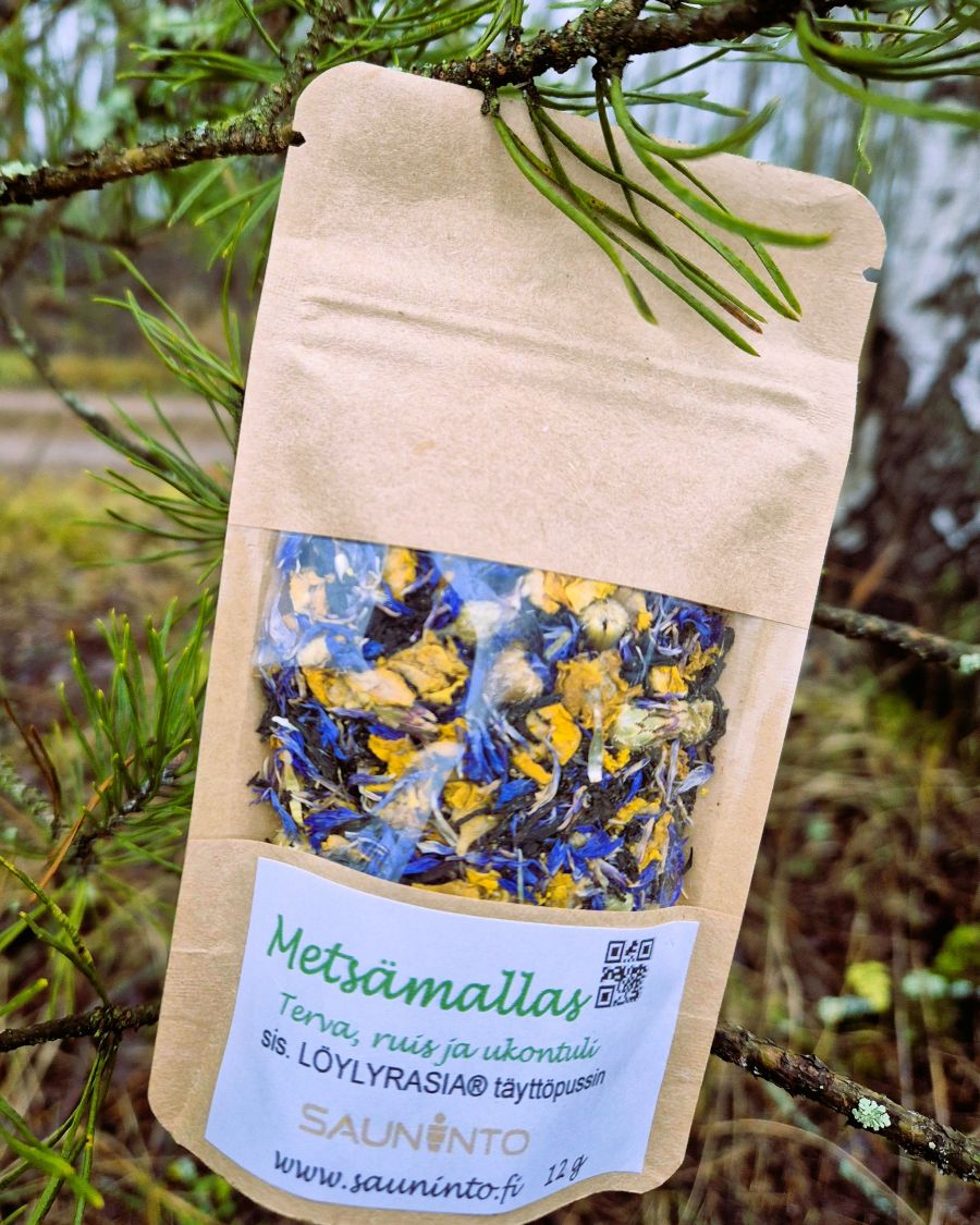 Tuoksu jossa savusaunan lämmin tervan aromi kohtaa raikkaan oluen maltillisen vivahteen. Tervan tuoksu syntyy tulen päällä kuivatuista teenlehdistä. Mukana myös ruiskukka ja ukontulikukka. Sisältää täyttöpussin.